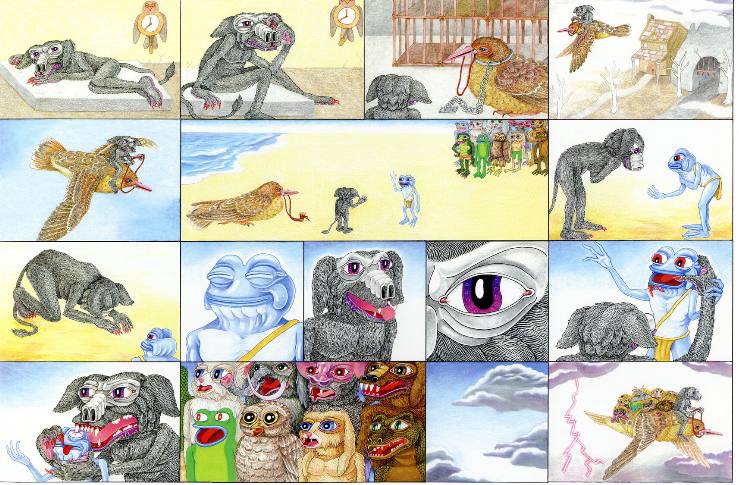 BeBe Is the Elder Blue Frog from "Mindviscosity" He Is seen amongst Other characters Ohare, Groggo, Rainbow, FeFe , Scaley and Wolf Skull.